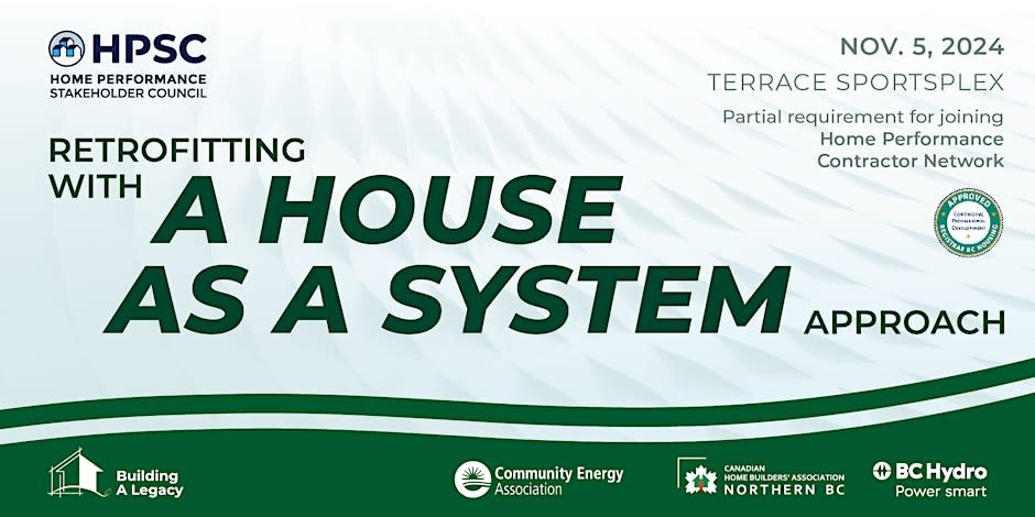 Building A Legacy North, a collaboration of CHBA Northern BC and Community Energy Association, is bringing another in-person, quality training opportunity for building professionals in Northwestern BC.
